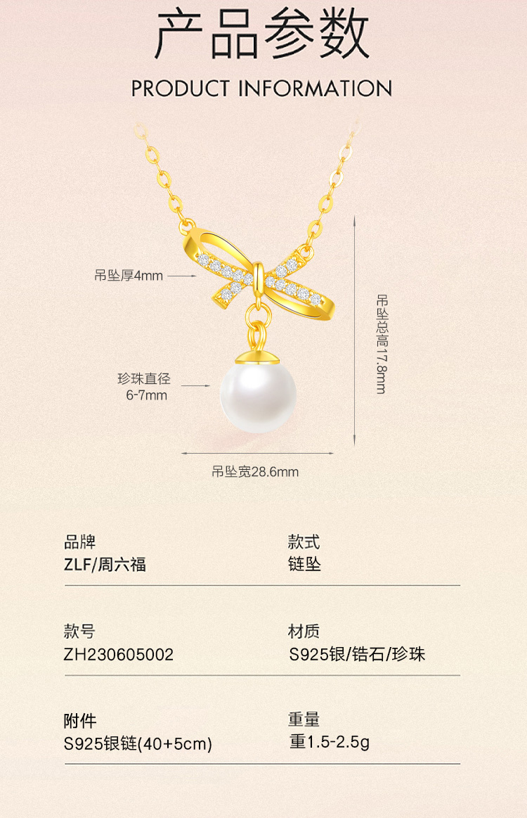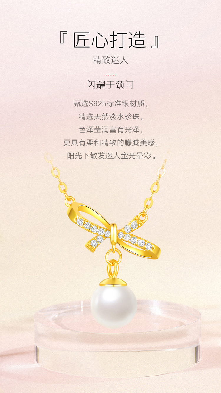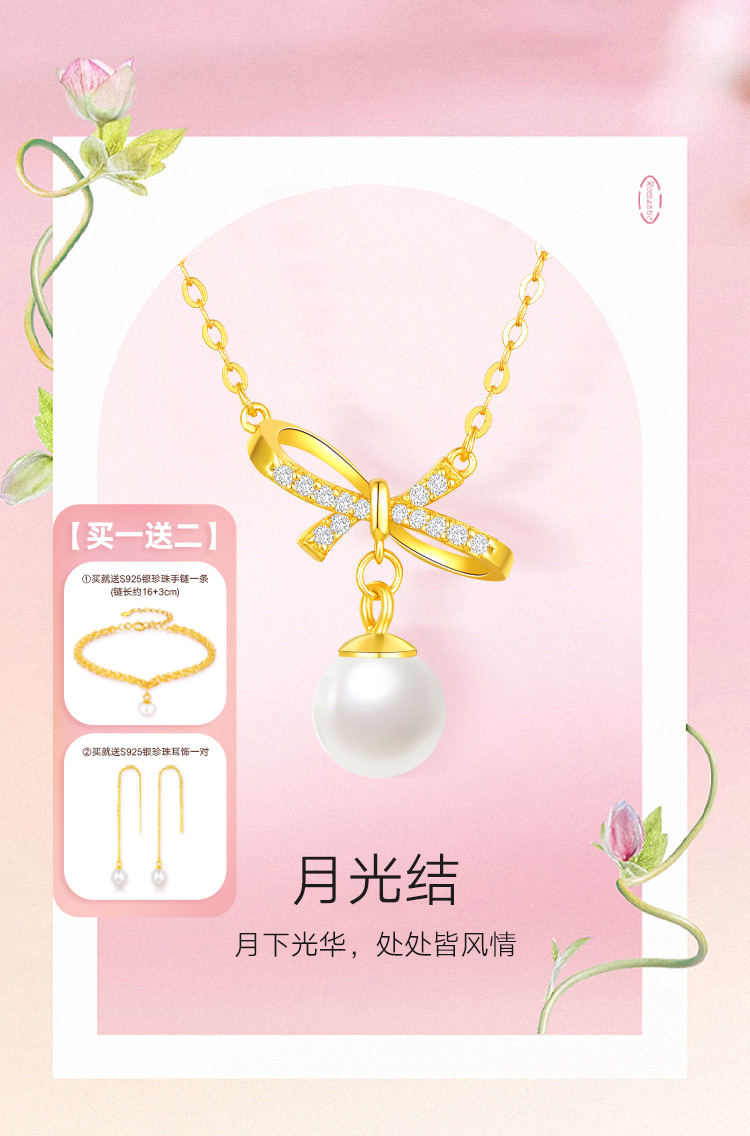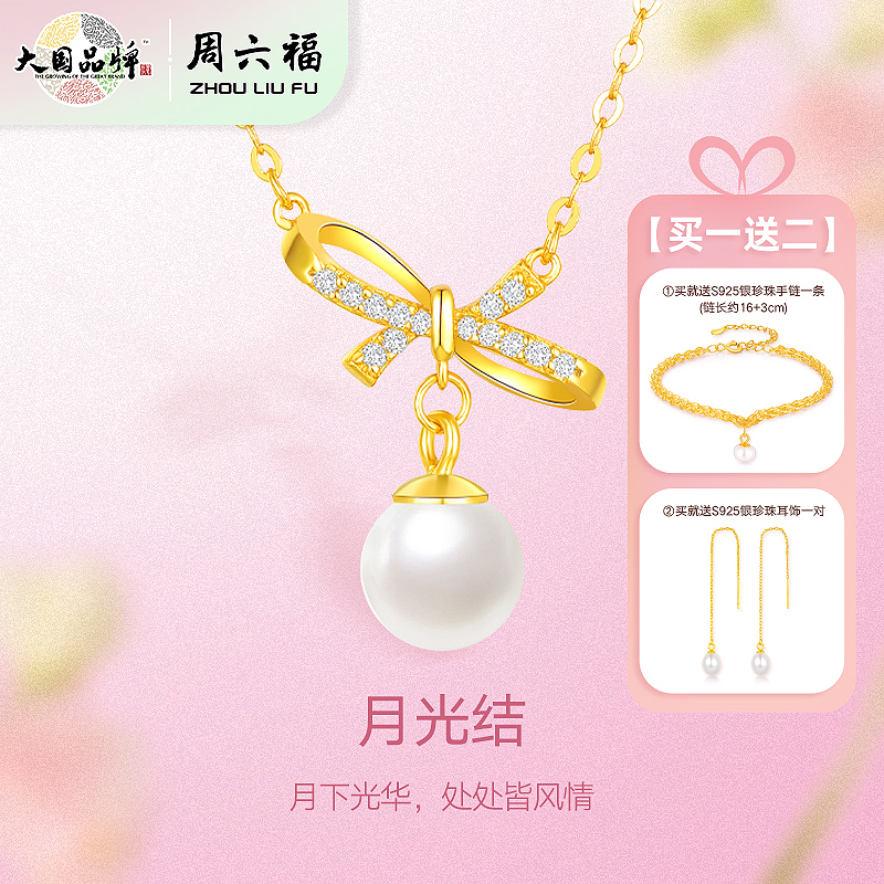 周六福S925银珍珠月光结项链(赠送珍珠耳线、凤尾珍珠手链)ZH230605002【新疆西藏不发货】