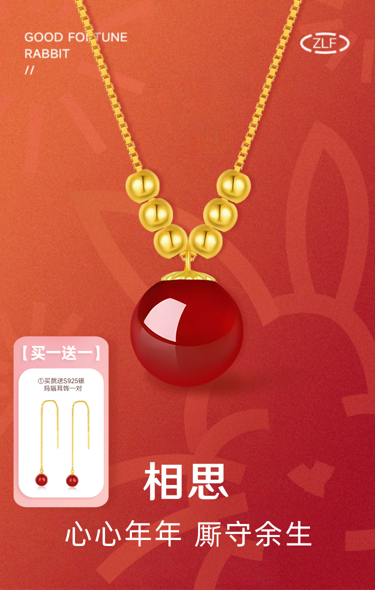 周六福18K金珠入骨相思玛瑙(赠送红玛瑙耳饰)ZH230606001【新疆西藏不发货】