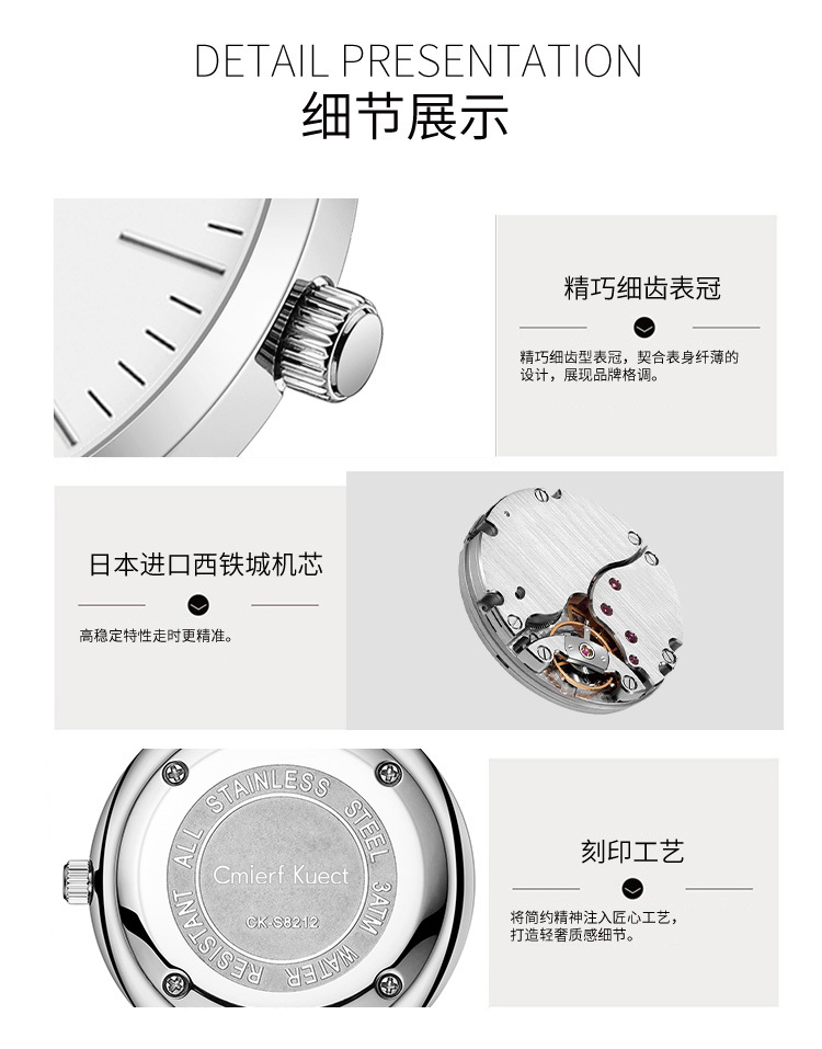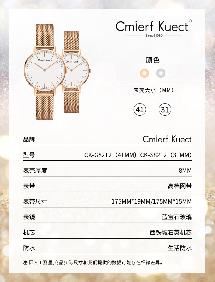 Cmierf Kuect(中国CK)时尚简约防水情侣对表CK-S8212(金色)