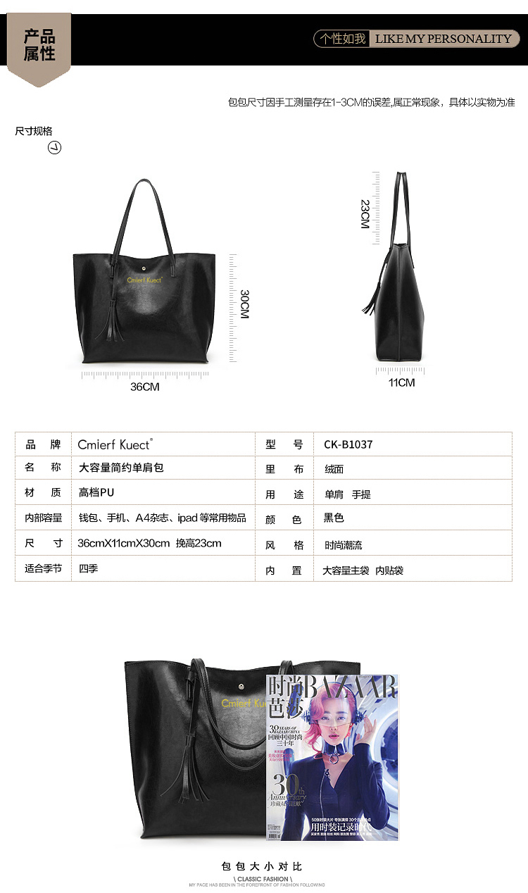 Cmierf Kuect(中国CK)大容量简约百搭通勤托特包单肩包CK-B1037