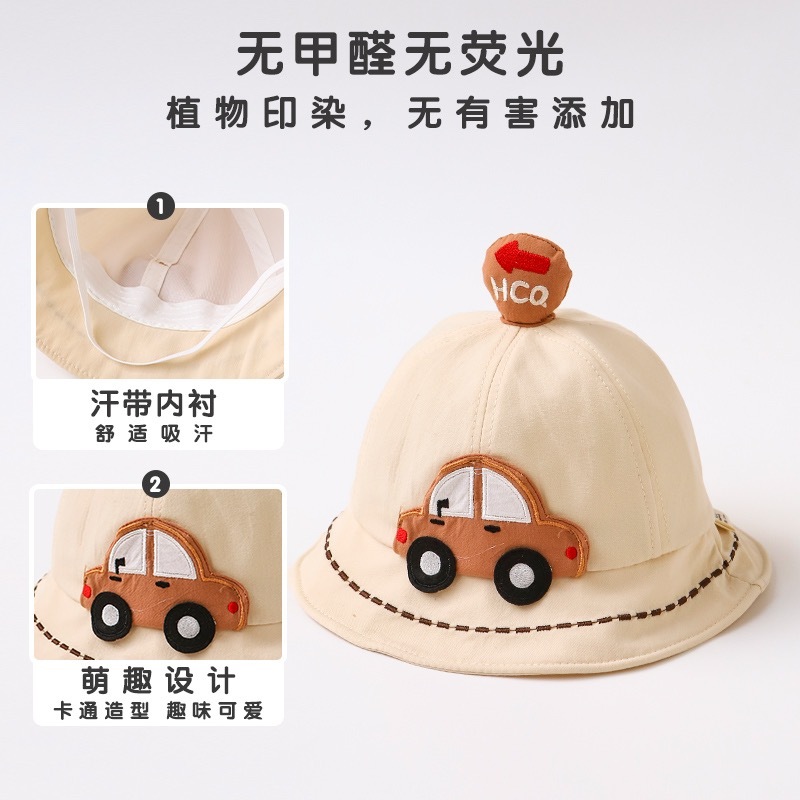 【买一送一】宝宝帽子小汽车婴儿遮阳渔夫帽薄款出游男女童防晒盆帽