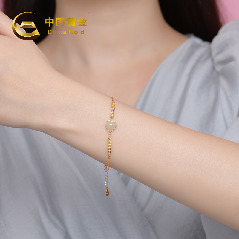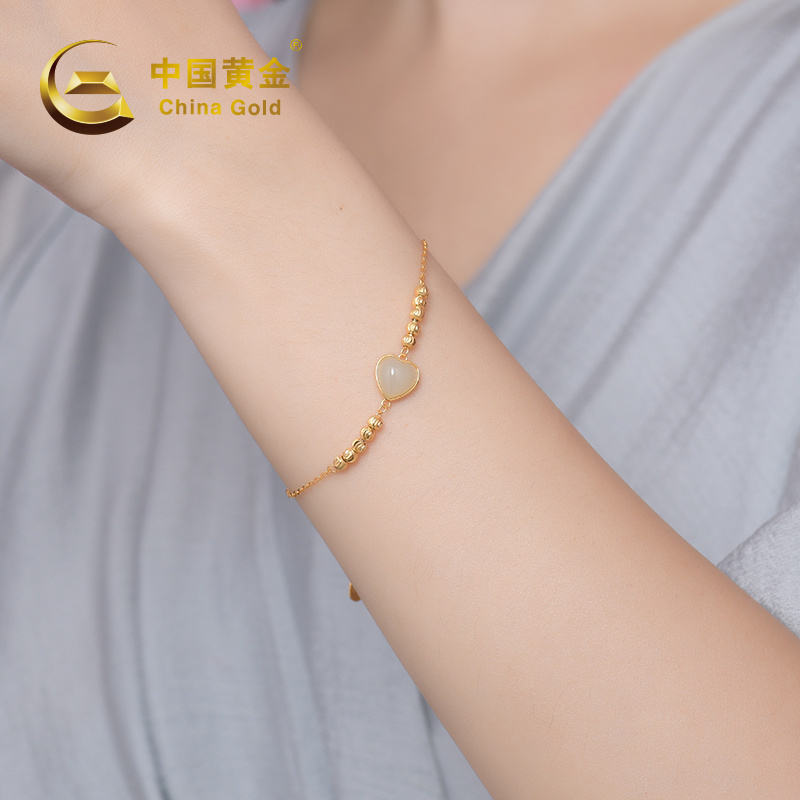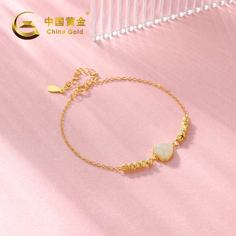 中国黄金珠宝首饰冰心玉洁 S925银镶和田玉手链手饰