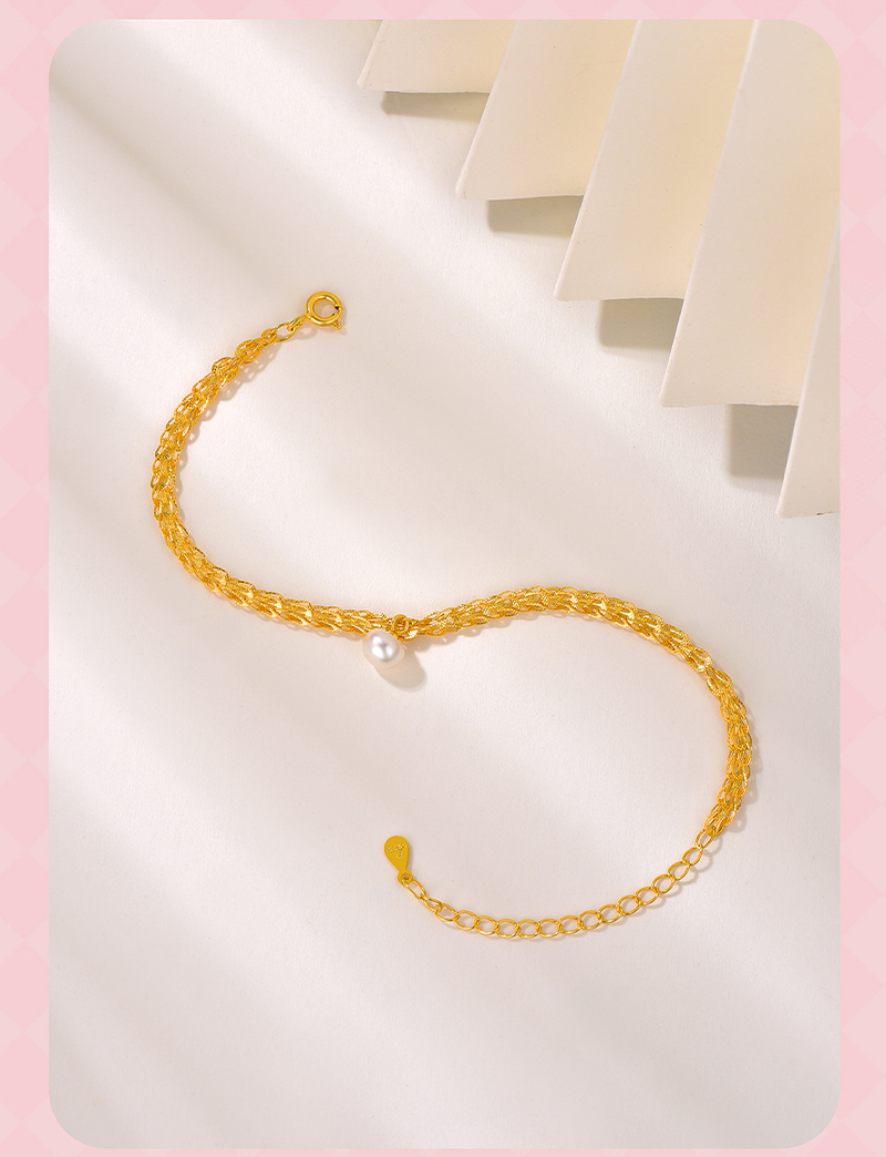 琳琯瑛心想事橙金丝玉手串【主材质:石英岩玉,配饰:石英岩玉、贝宝珠、沙金,珠径约:8mm,周长约16cm弹力绳】LGY662每证一品