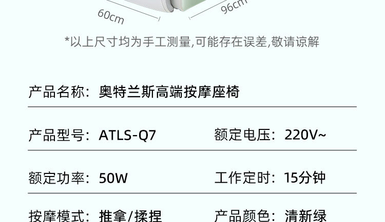 奥特兰斯智能按摩椅ATLS-Q7家用电动多功能智能豪华沙发 全身电动款老人用全家用 德邦快递发货 送货上楼