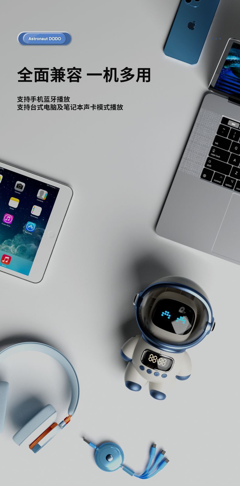 勒沃宇航员DODO多功能大音量智能语音蓝牙音响LV-M20