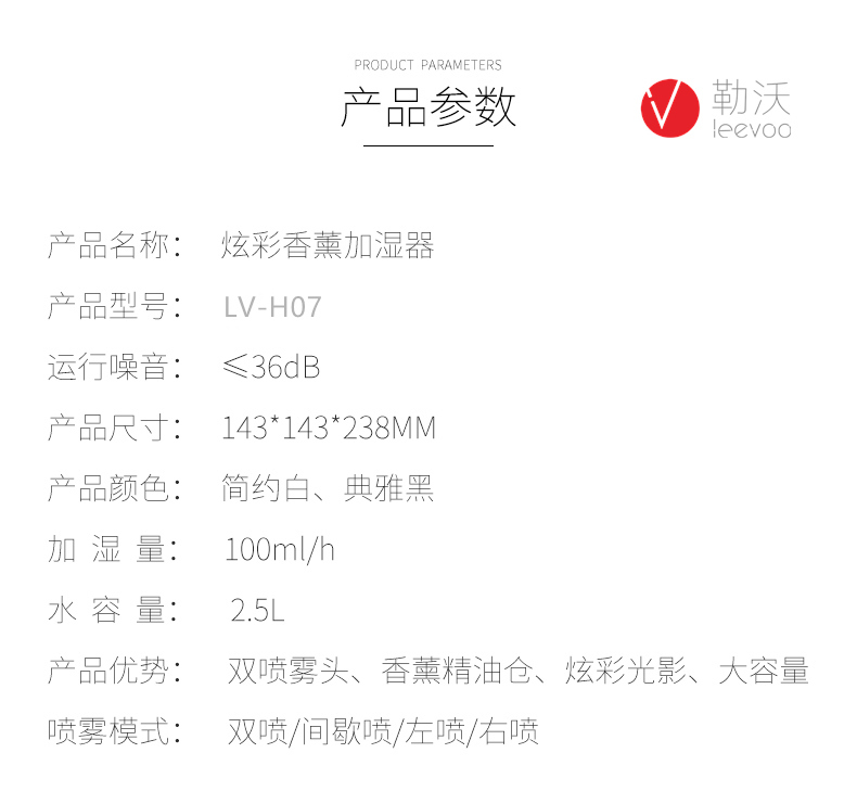 勒沃炫彩静音大容量香薰加湿器大喷雾LV-H07