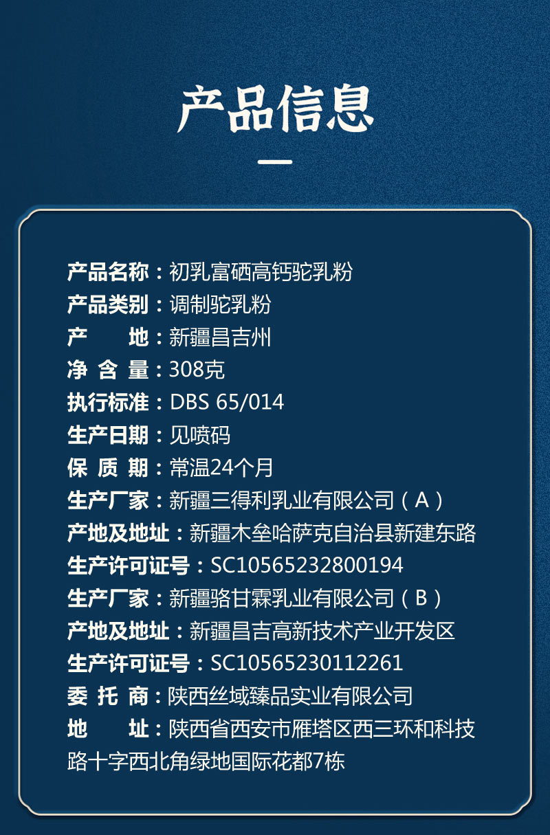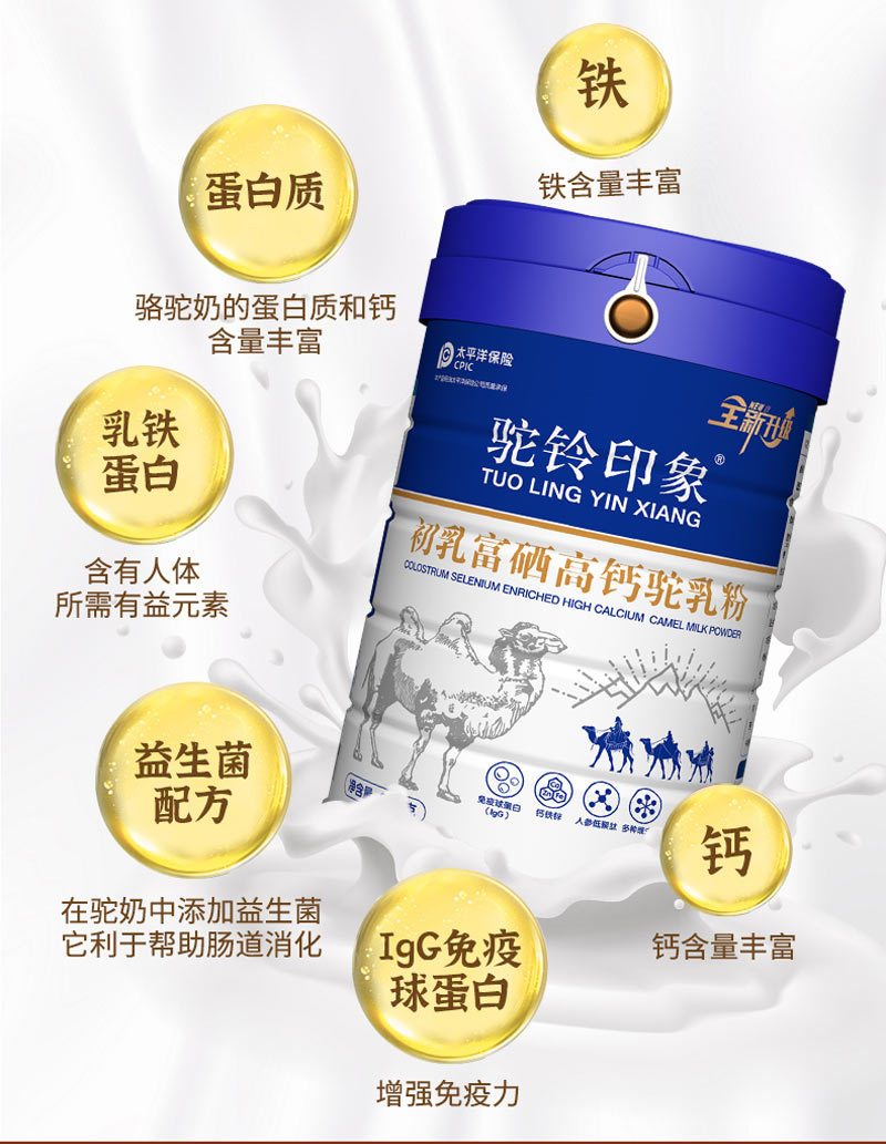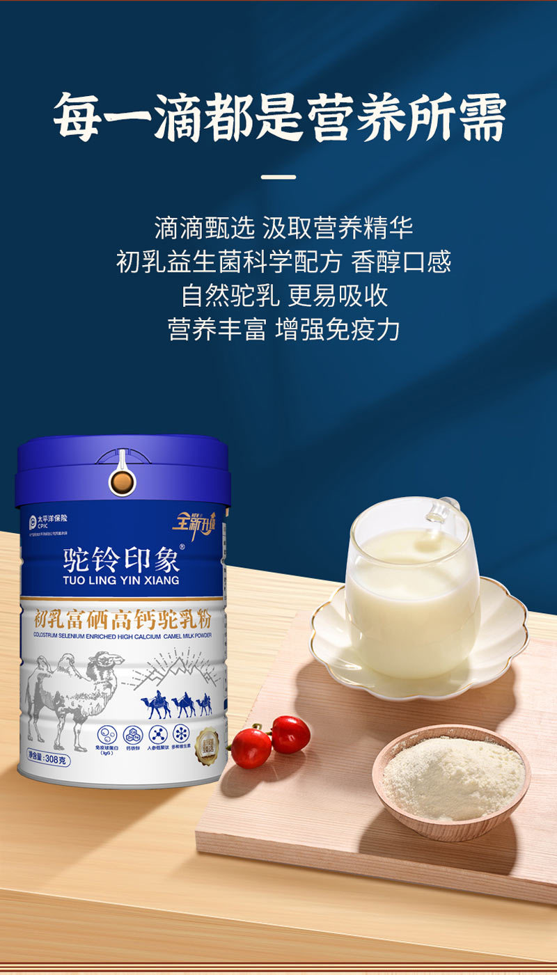 驼铃印象初乳成人老年奶粉富硒高钙驼乳粉308克/罐