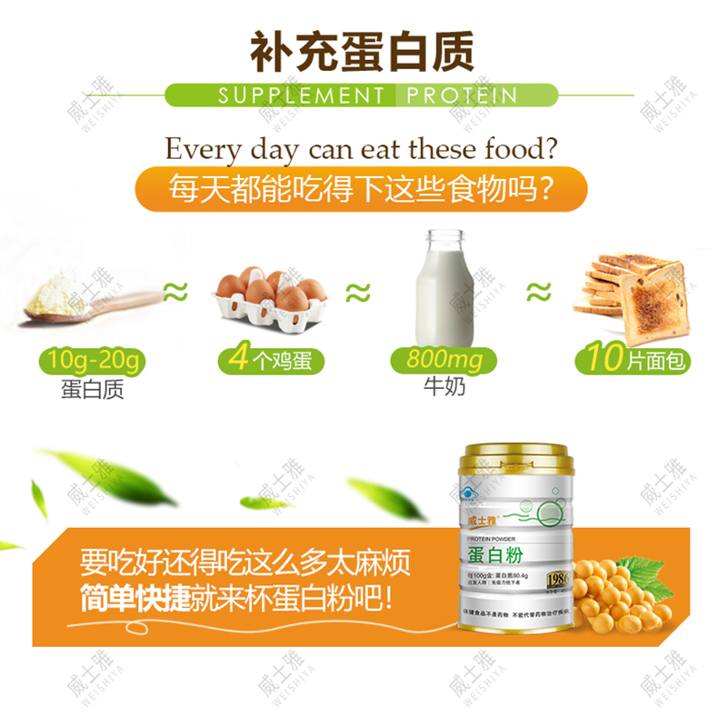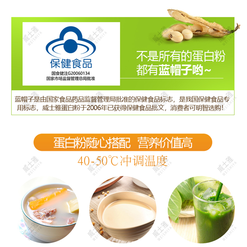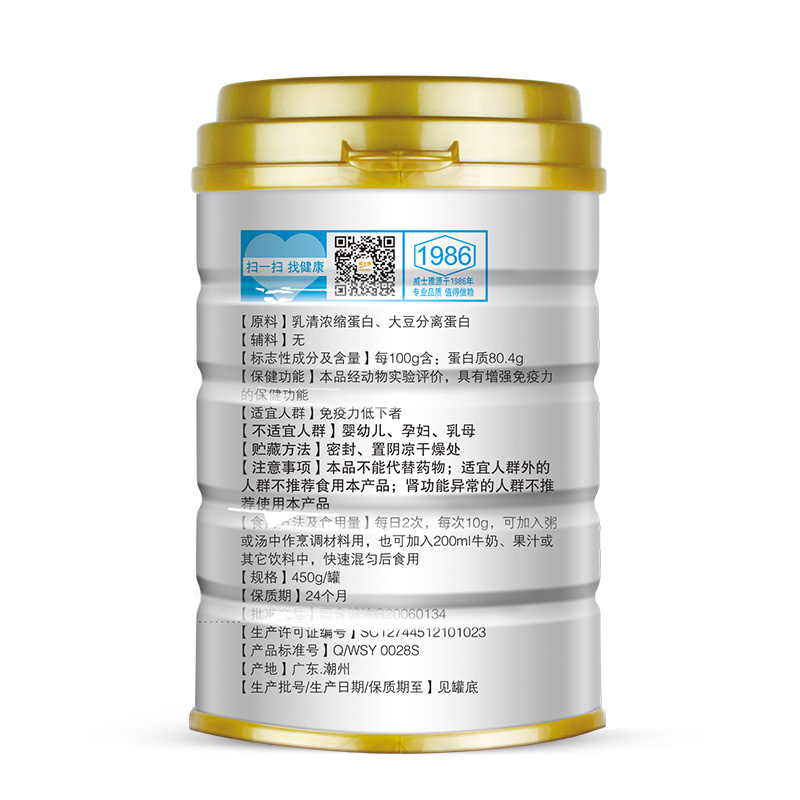 威士雅蛋白粉大豆蛋白乳清浓缩蛋白质营养粉健身提高免疫450g/罐O810