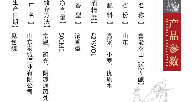 包邮-鲁能泰山 陈5酿 42度浓香型白酒 500ml/瓶*6瓶 整箱装