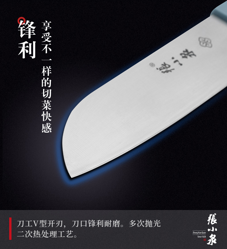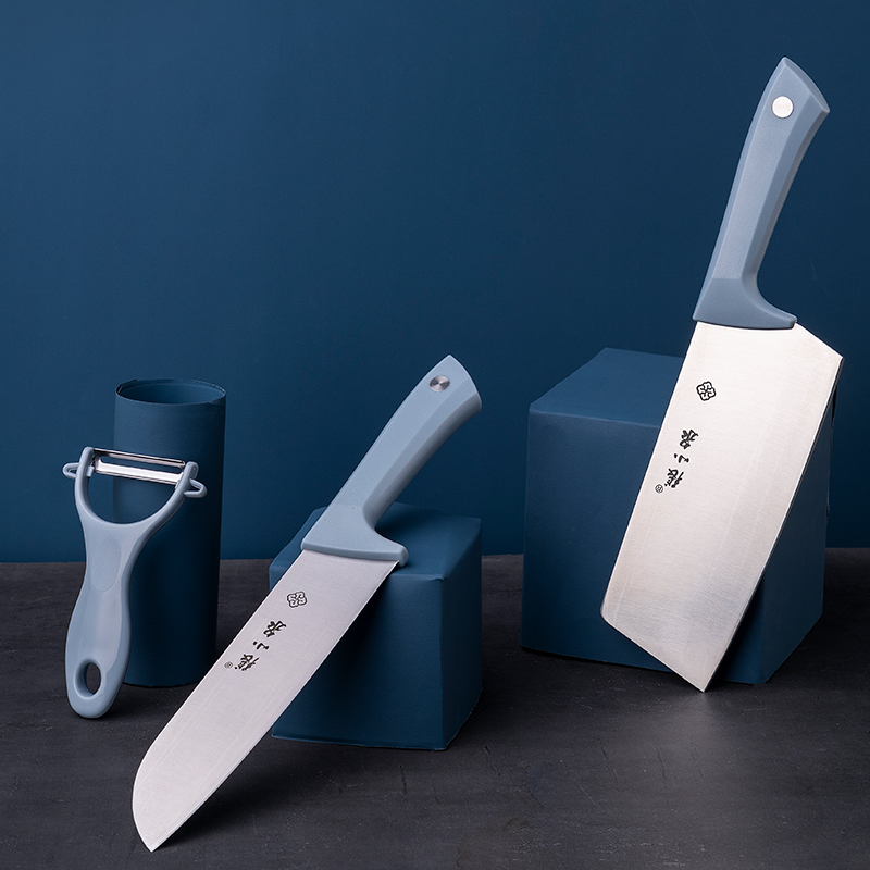 张小泉 摩捷优雅蓝刀具三件套 家用厨房切菜刀切肉刀小厨刀水果刀不锈钢刀 D40440100