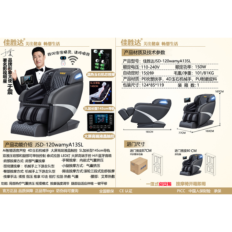 佳胜达按摩椅JSD-120wamyA13SLAi语音 黑色(豪华版)