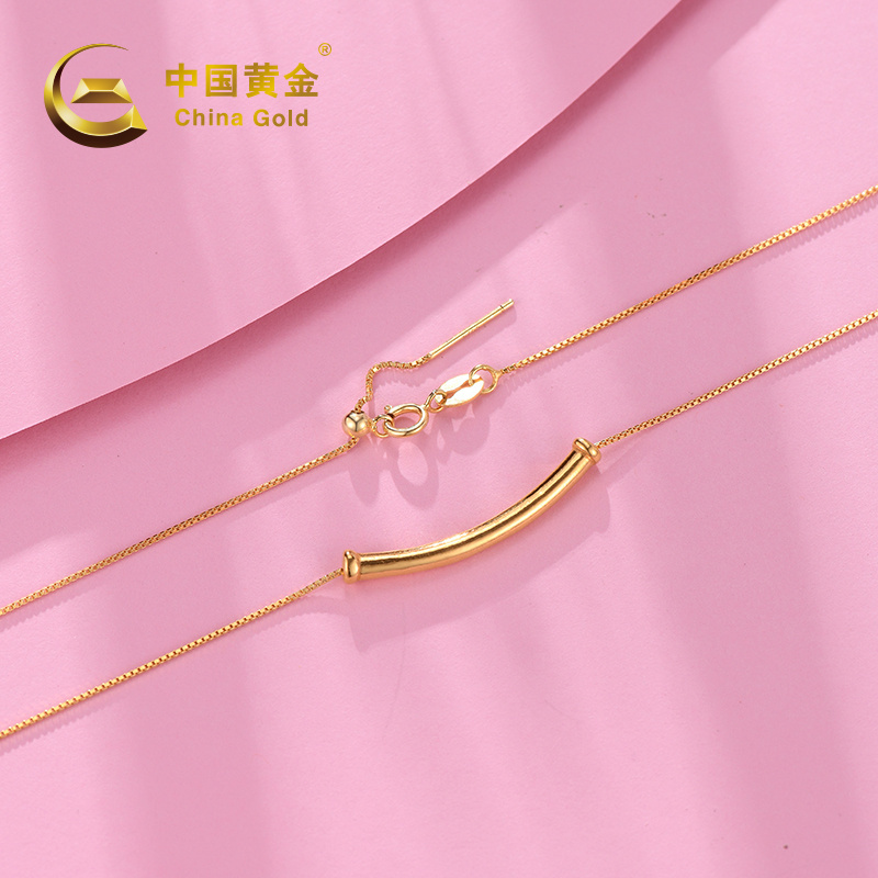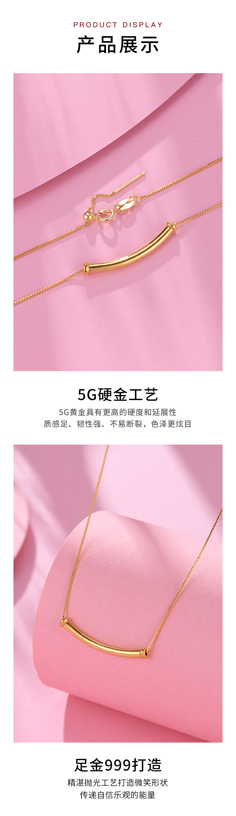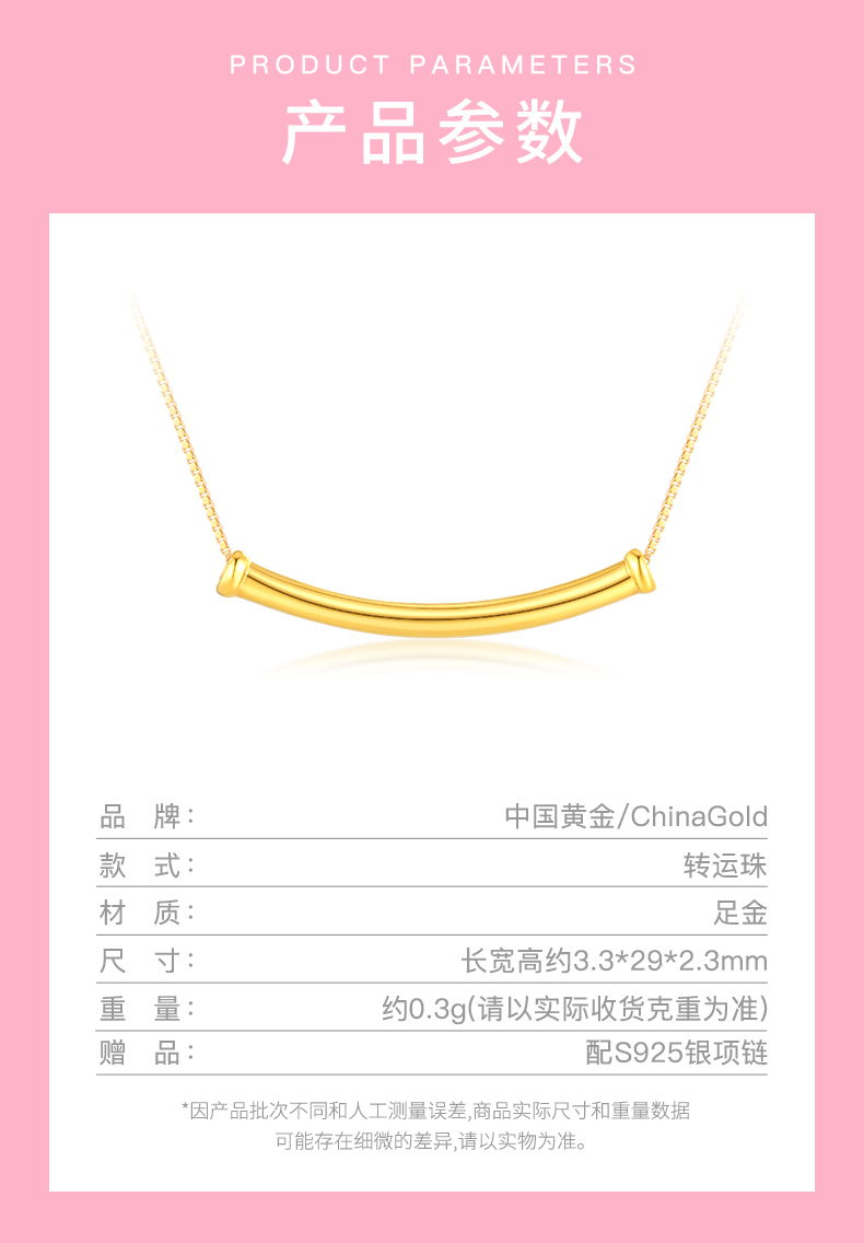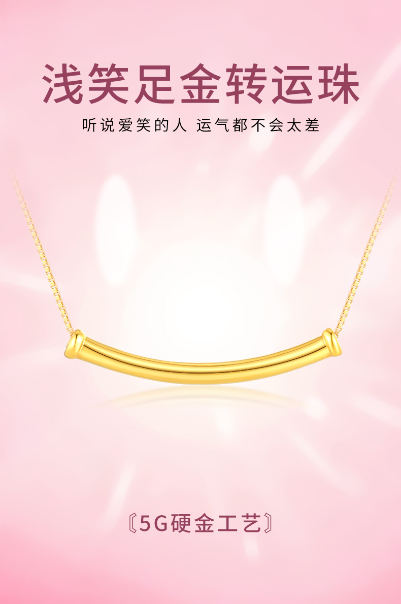中国黄金珠宝首饰5G黄金古法足金浅笑转运珠项链