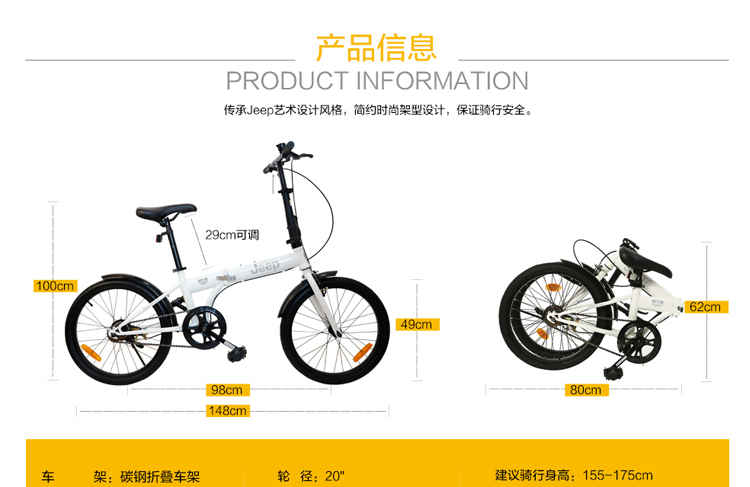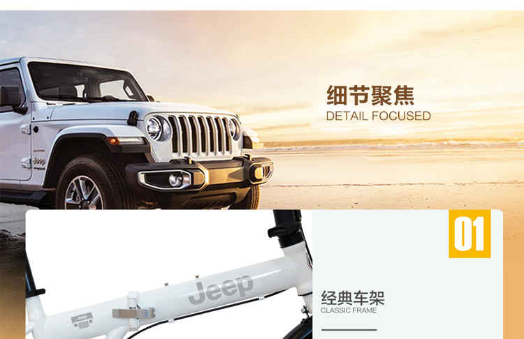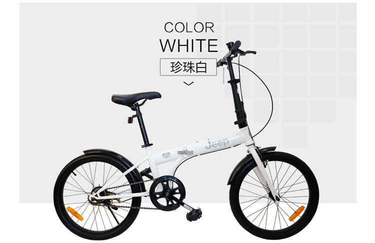 【绿色出行节能环保】Jeep美国吉普 城市休闲折叠单车自行车骑行车 20寸单速 男女休闲 白色