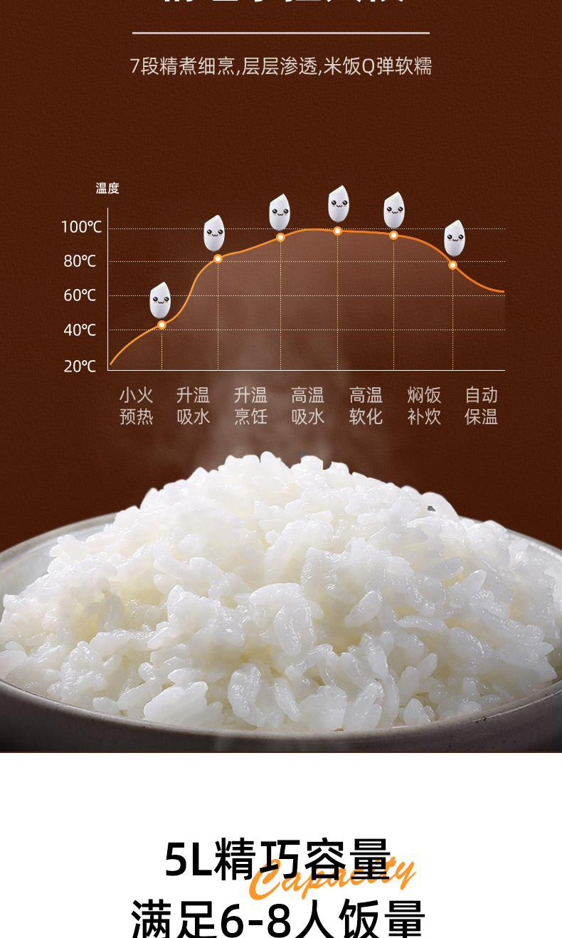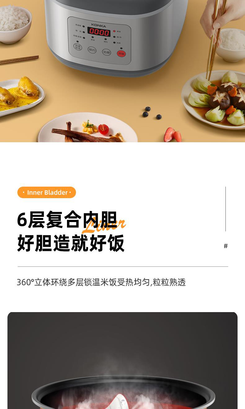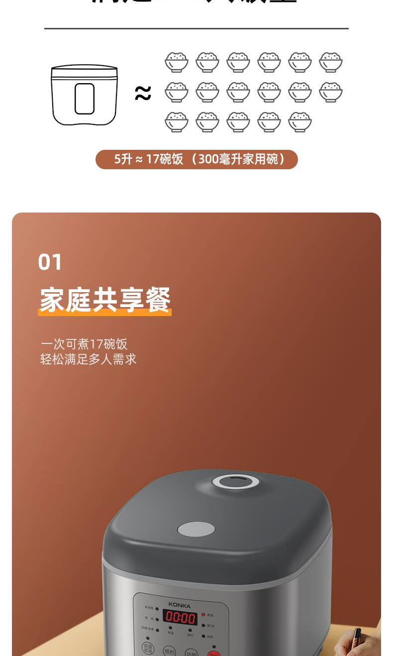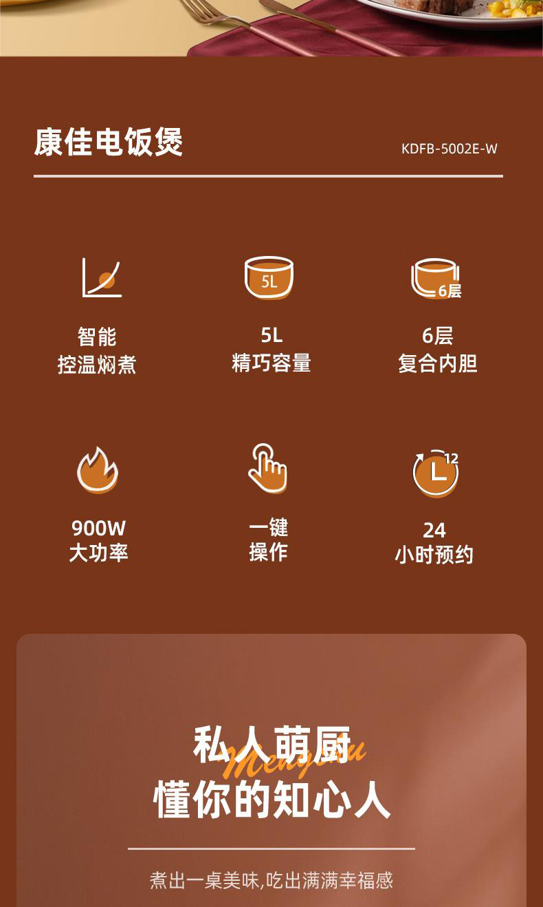 康佳电饭煲家用5L智能电饭煲KDFB-5002E-W