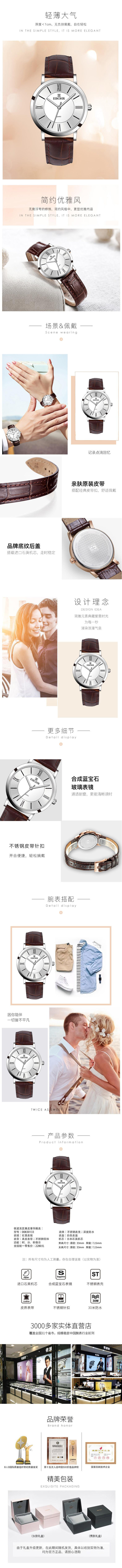 依波钟表休闲商务皮带石英情侣表白面手表腕表0083