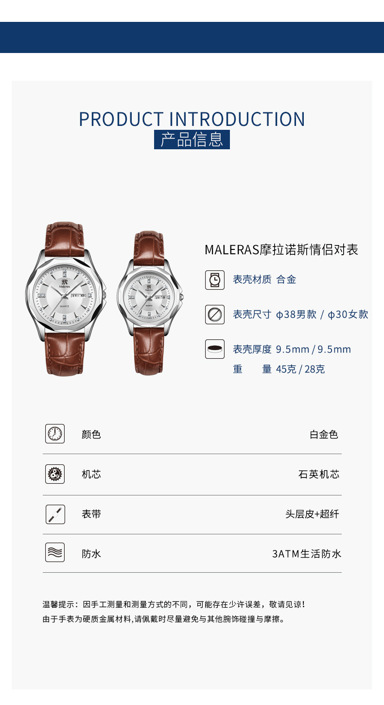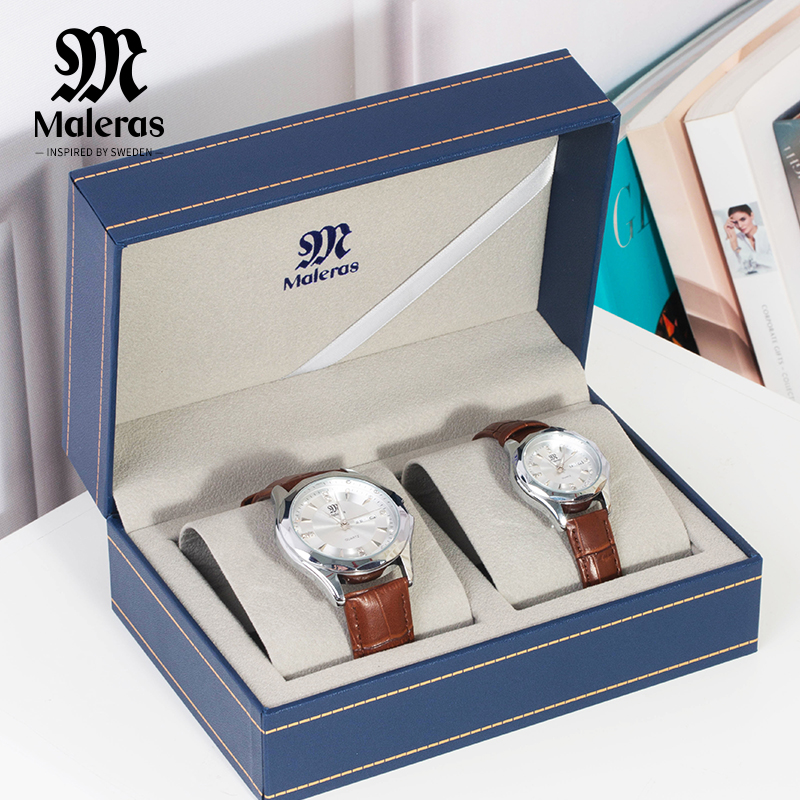 Maleras摩拉诺斯瑞典皇室品牌 时光之舞系列情侣腕表 男女情侣手表对表永恒光芒 两支装 礼盒包装七夕佳礼石英手表