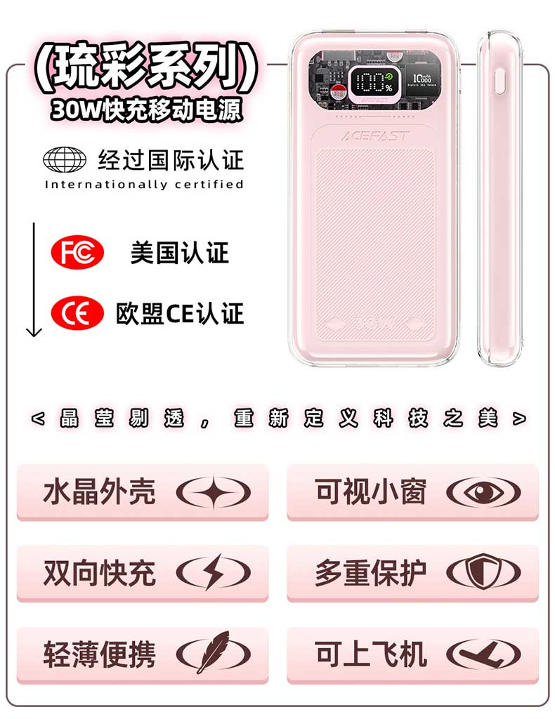 包邮-积速ACEFAST琉彩系列30W快充移动电源M1-10000毫安