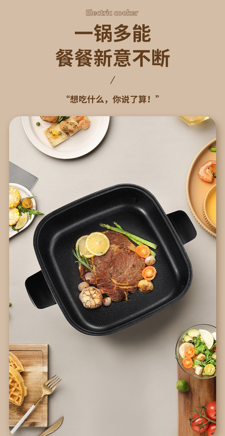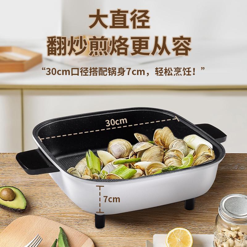 (MEILING)美菱电火锅MT-HZ12J3 多功能电炒锅电热炒煮蒸煎涮一体锅铁氟龙涂层不粘锅 红色