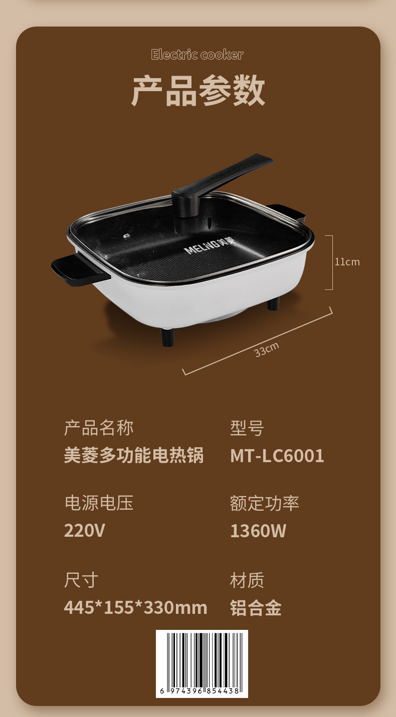 美菱6L大容量电火锅MT-LC6001