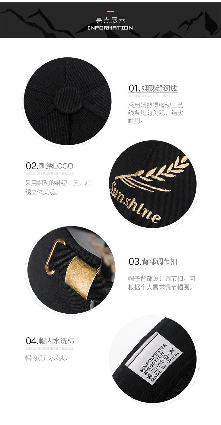 梓延严选麦穗R刺绣棒球帽(涤棉两处刺绣)