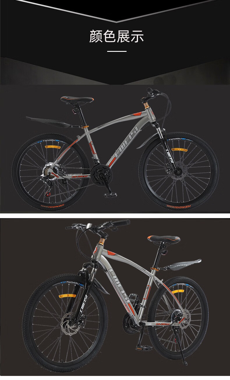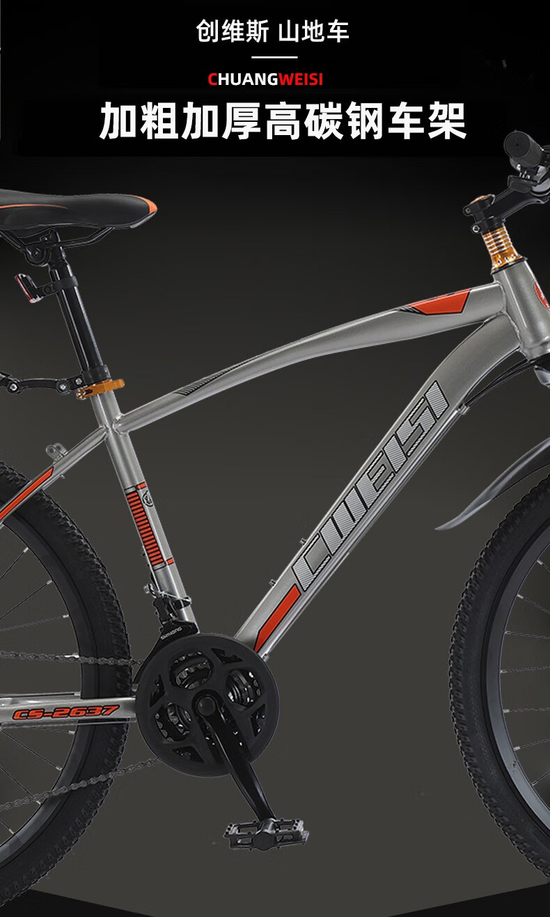 创维斯 全新升级款山地车 学生车自行车 山地自行车26寸减震弯梁单车户外骑行变速越野学生自行车 灰桔色灰白色两个规格可选 CS-2637