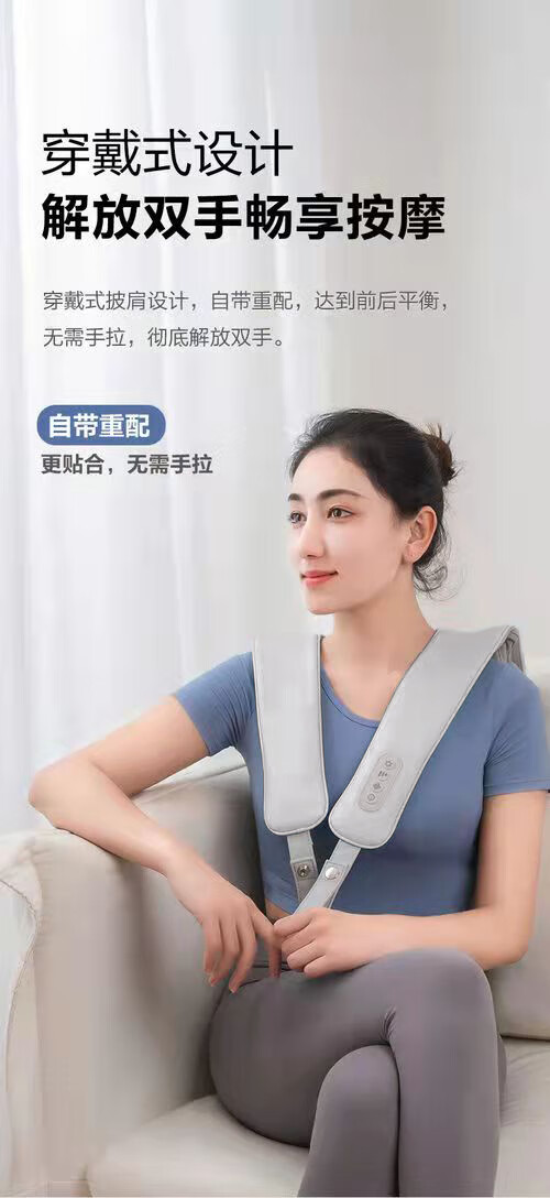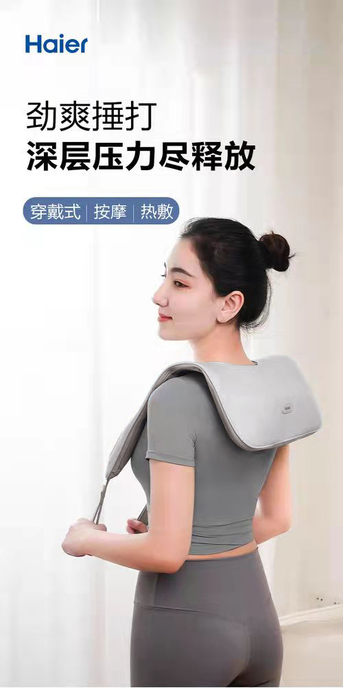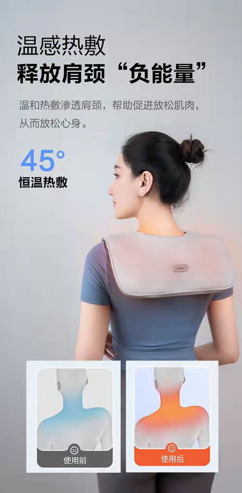 海尔 Haier 颈椎按摩器肩颈部按摩披肩背部腰部温感热敷按摩器家用便携式按摩仪 精美礼盒装 按摩披肩送父母亲友节日礼物 HTJ-X602H灰色