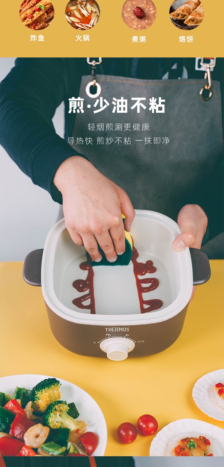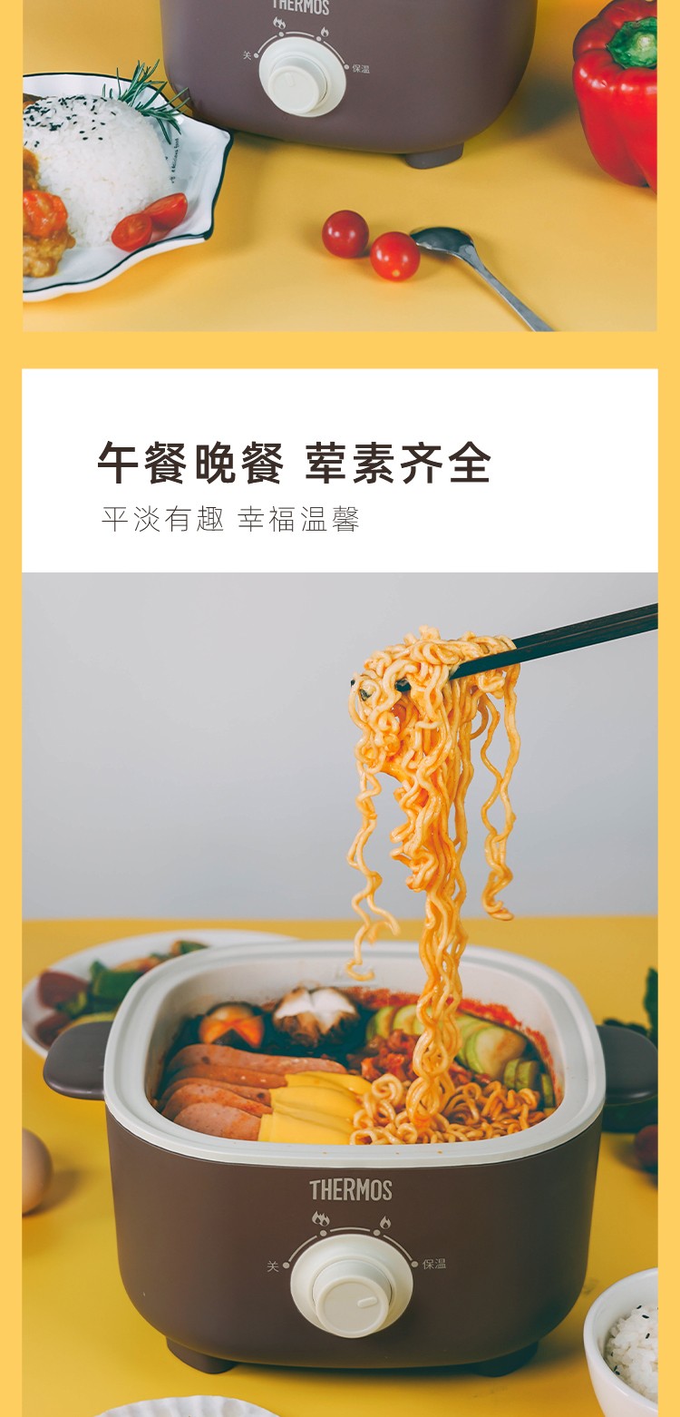 膳魔师 THERMOS 多功能不粘电火锅电煮锅 EHA-4333A(带蒸笼)上蒸下煮 双档火力可调【新疆、西藏、青海、宁夏、内蒙、甘肃、海南不发货】