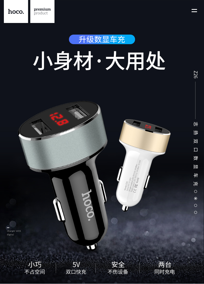 浩酷Z26 志扬双口数显车载充电器(颜色随机发)