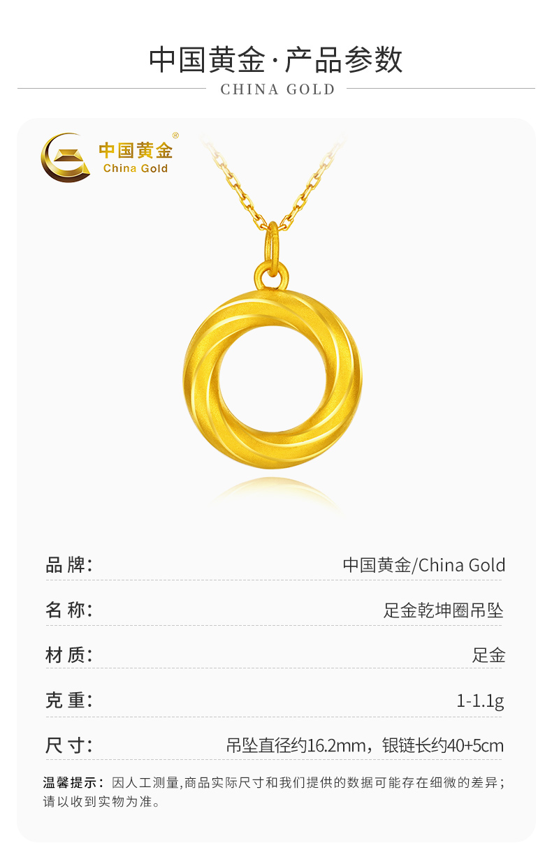 中国黄金足金乾坤圈吊坠ZGHJ230319【新疆、西藏不发货】