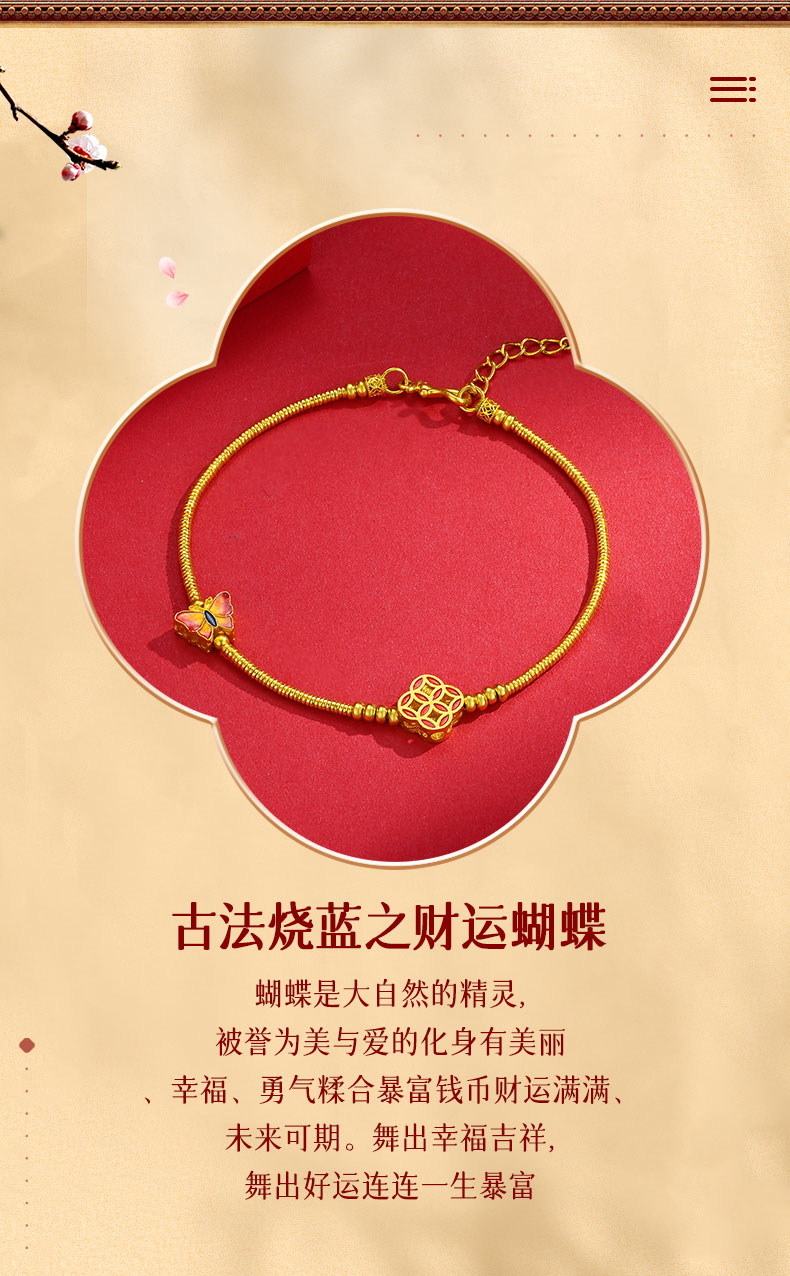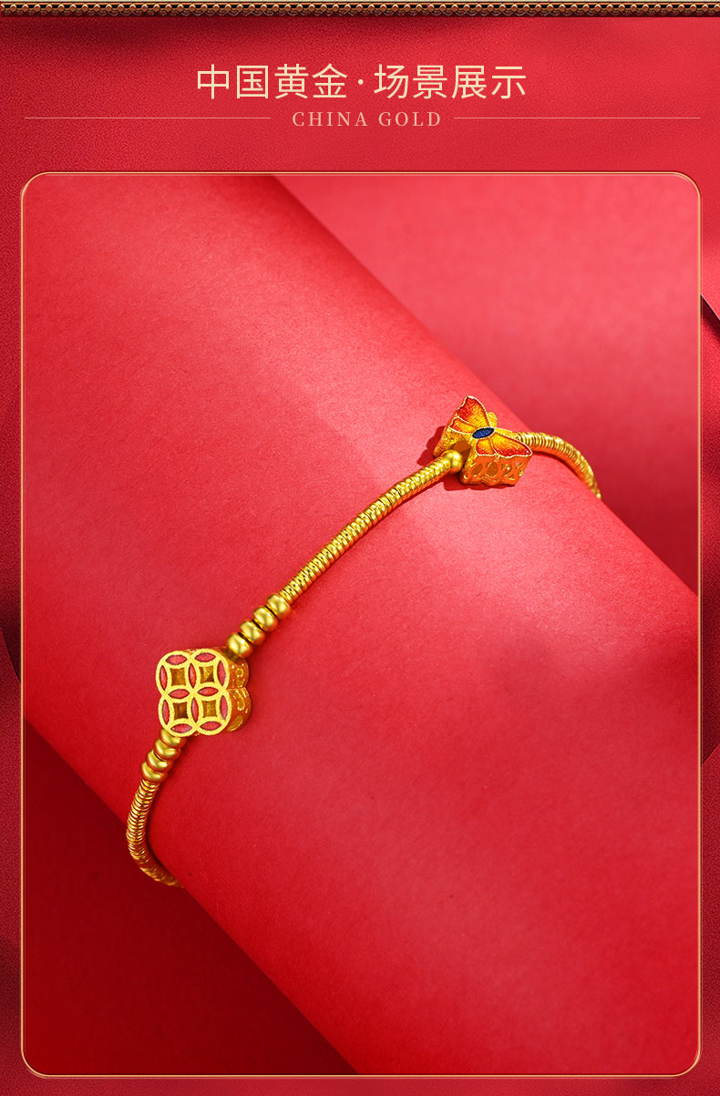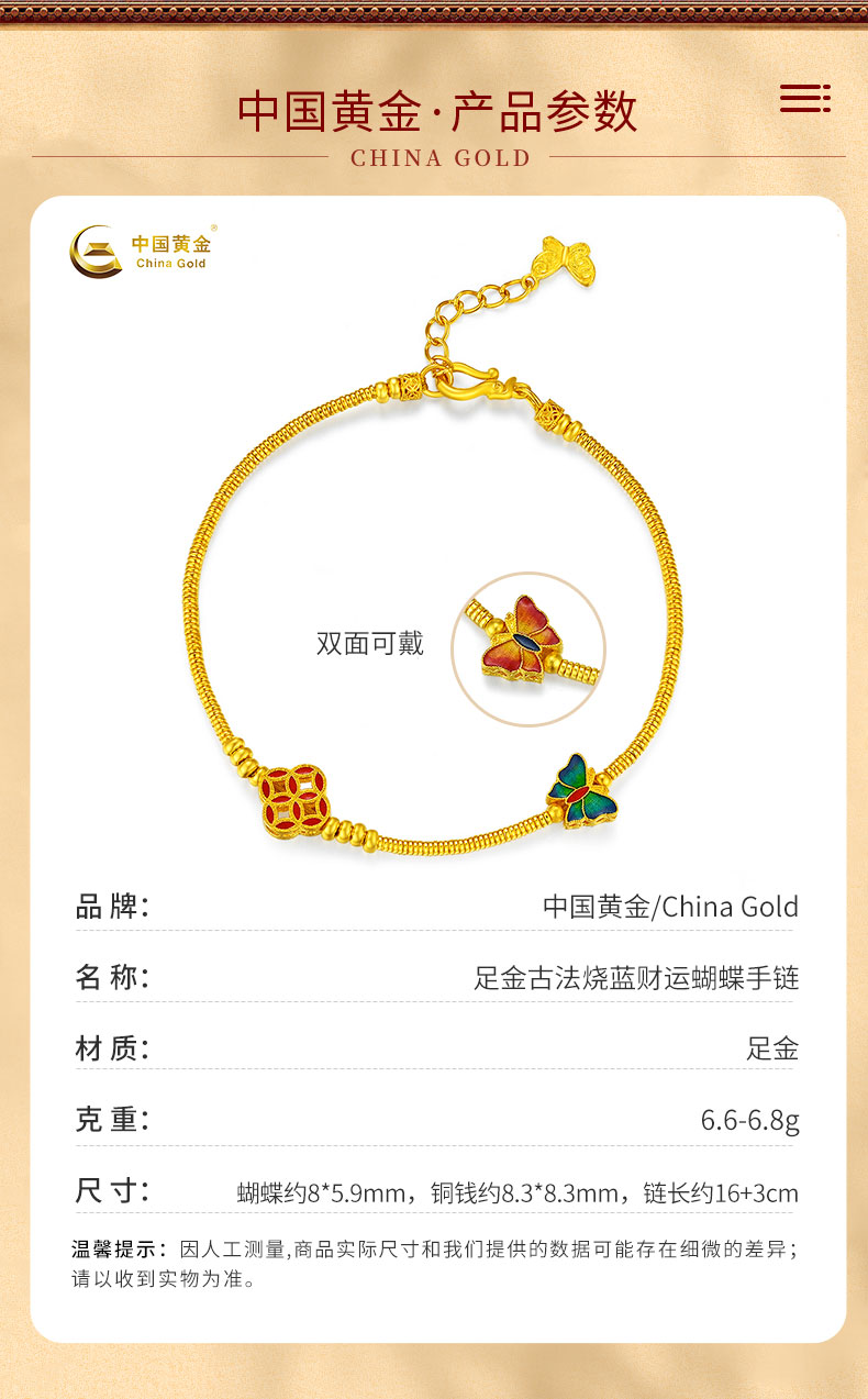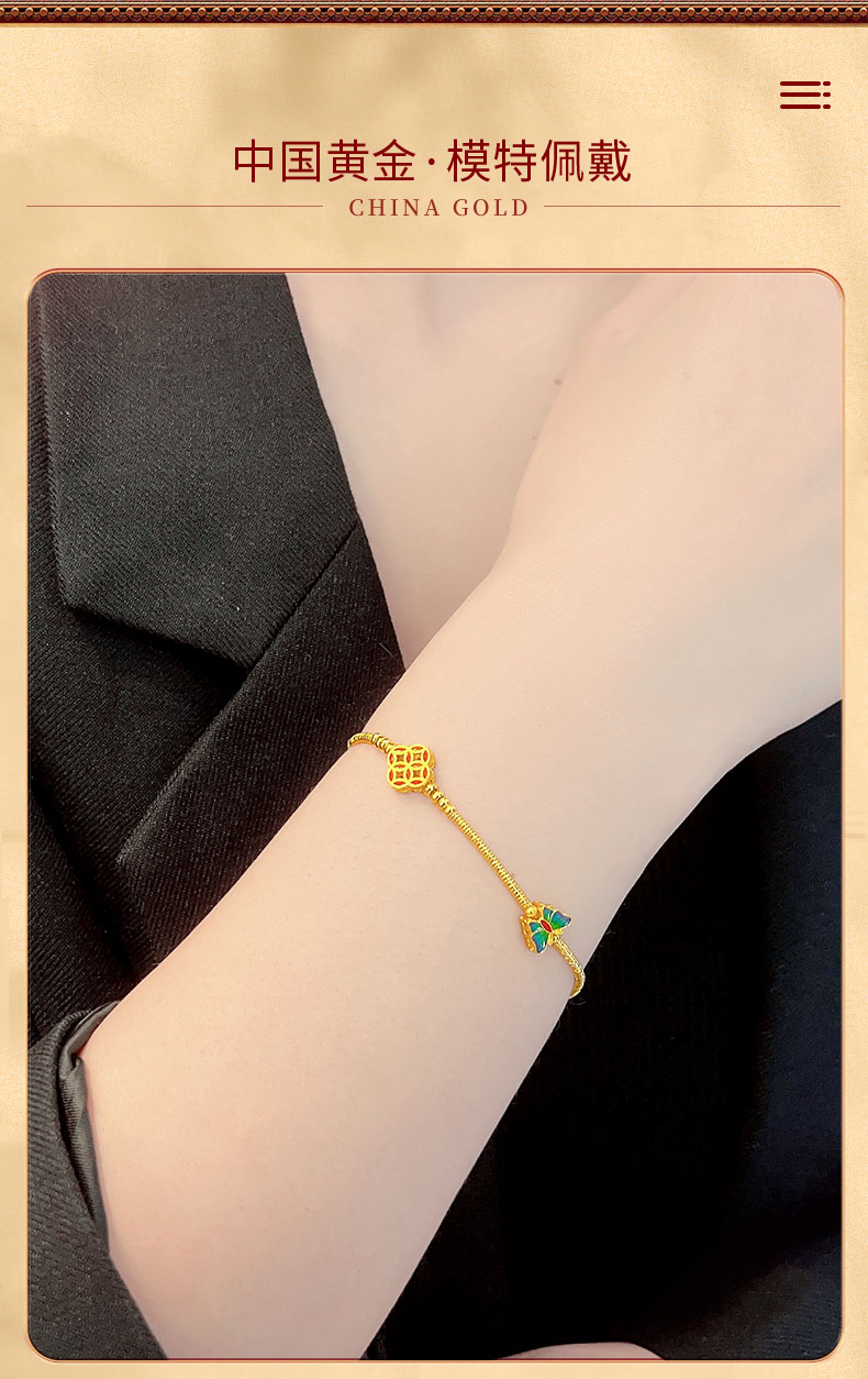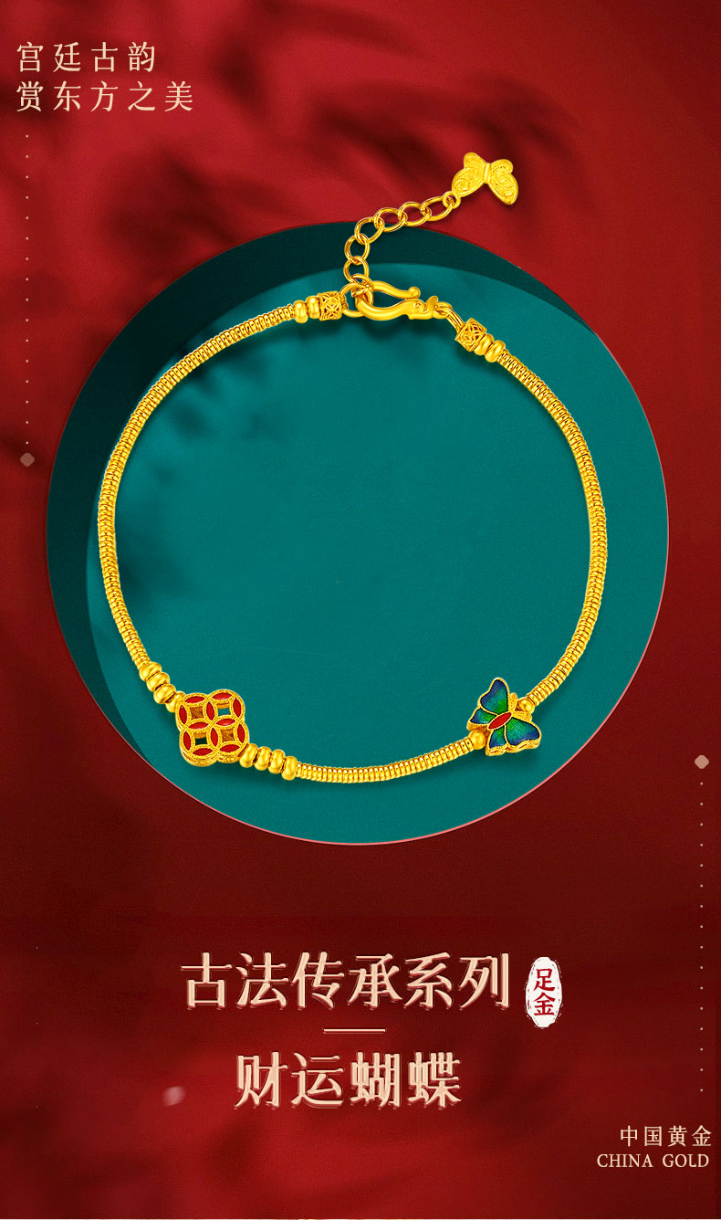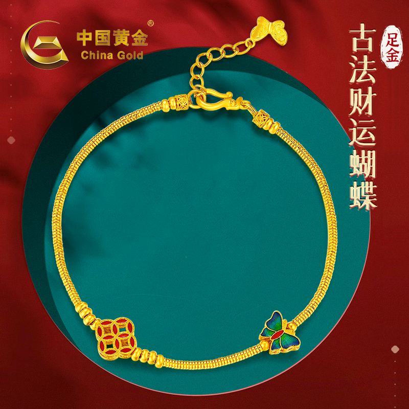中国黄金足金古法烧蓝财运蝴蝶手链ZGHJ230269【新疆、西藏不发货】