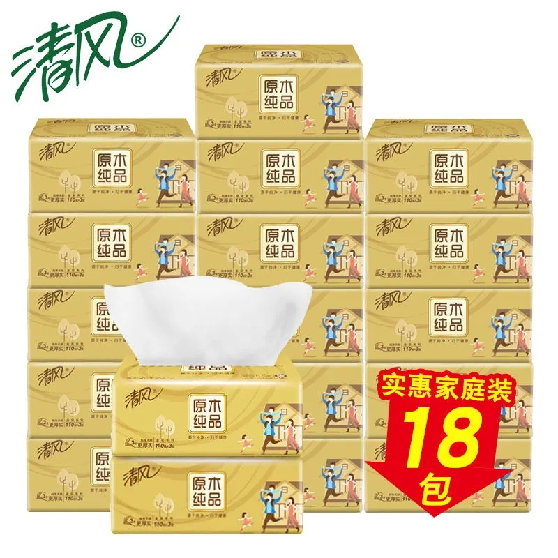 包邮-清风原木纯品金装3层110抽18包【新疆/西藏不发货】