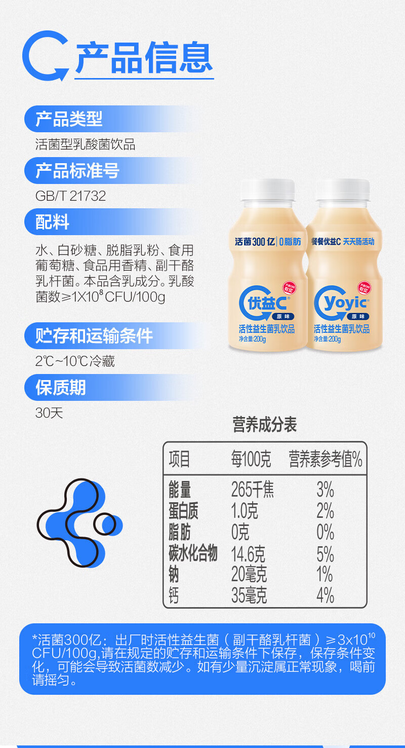 蒙牛优益C 益生菌乳饮200ml*9瓶 经典原味好喝不腻 零脂肪【新疆、西藏不发货】