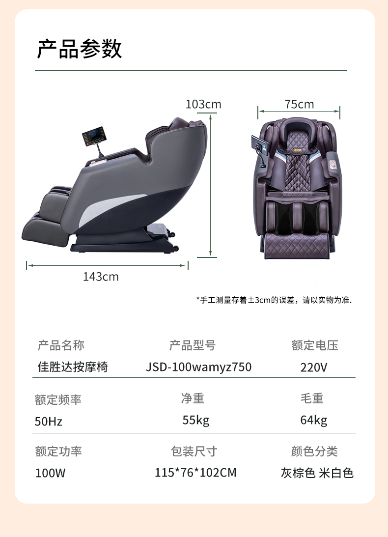 佳胜达750智能语音热敷家用全身多功能按摩椅JSD-100wamyz750