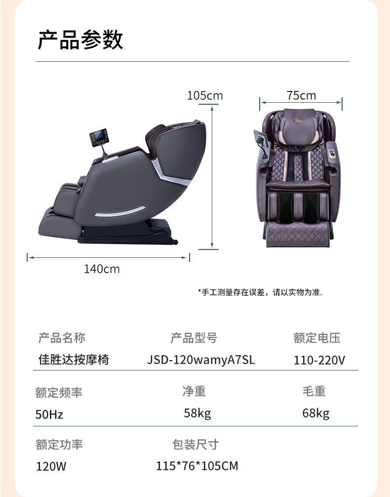 佳胜达A7SL智能语音多功能触控按摩椅JSD-120wamyA7SL