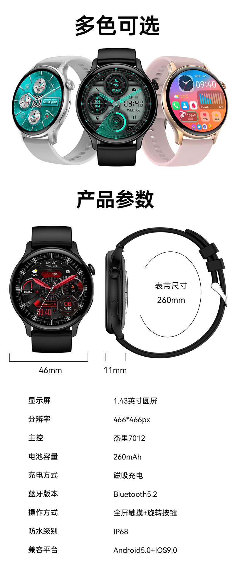 LEFIT勒菲特HK85支付型智能蓝牙通话手表多功能健康防水手表