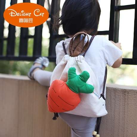 【小巧便利】喜喵豆/Delight Cat 韩范儿童 双肩萌宠背包 全棉帆布 旅行休闲(小马款/胡罗卜款)下单请备注所需颜色款式