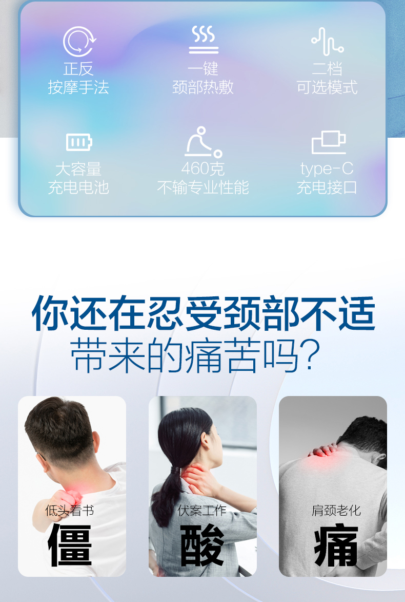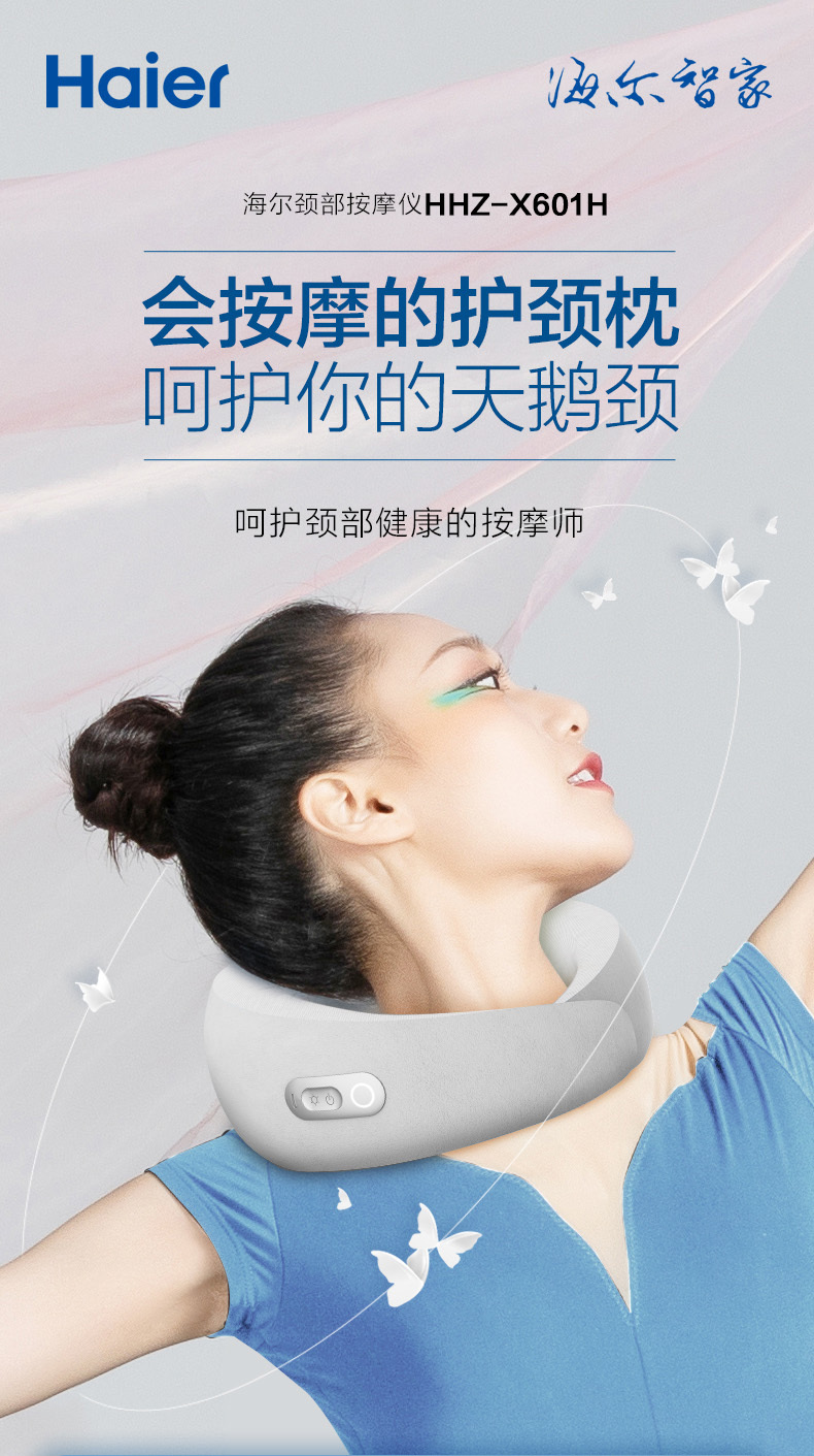 海尔颈椎按摩仪颈部脖子按摩枕热敷揉捏便携式U型HHZ-X601H