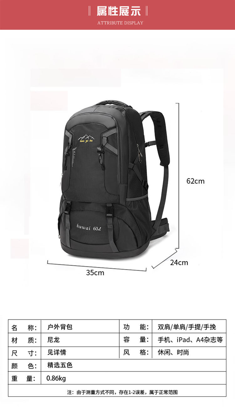 猎燕60L户外大容量多功能登山背包LYHUSB01