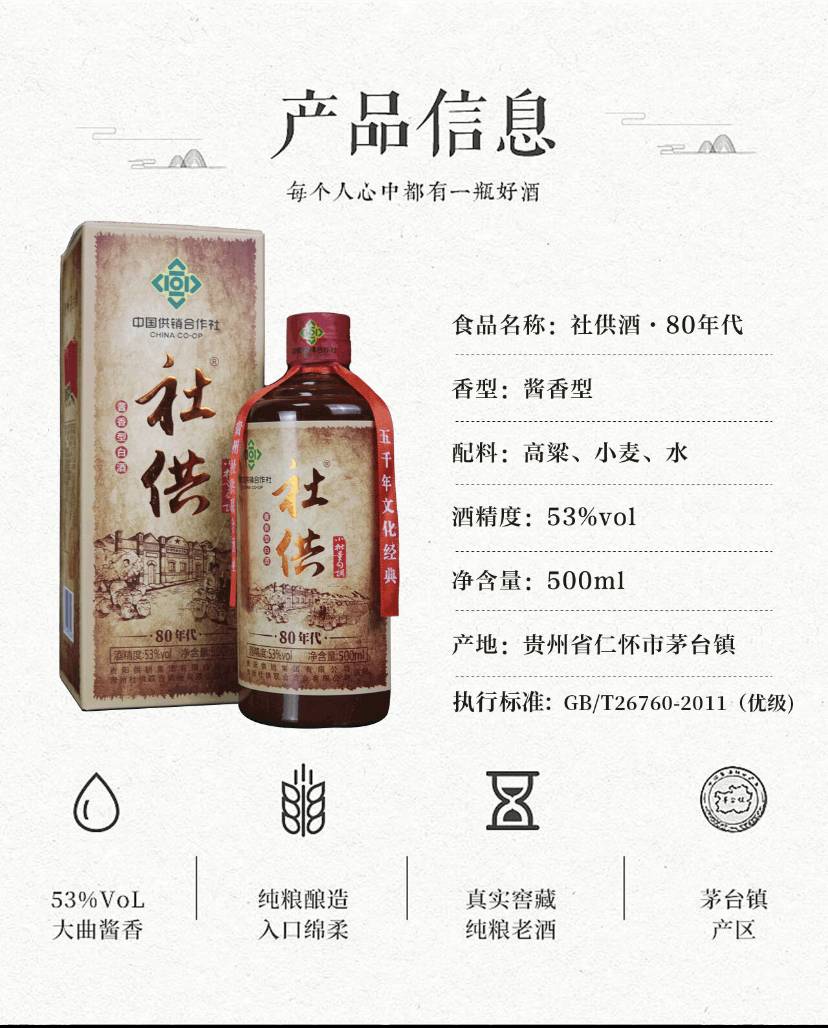 社供 80年代贵阳供销集团出品年货送礼 53度 酱香型白酒500ml 整箱6瓶装