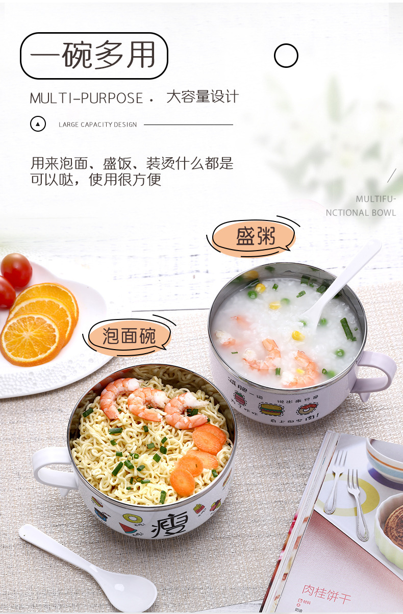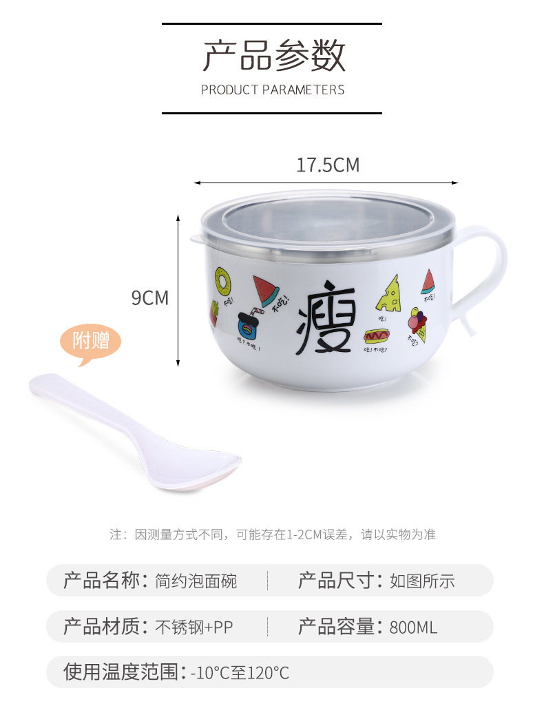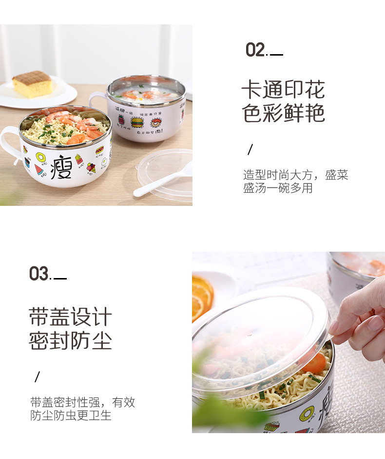 梓延严选不锈钢带盖泡面碗便当盒款式随机发(900ml)