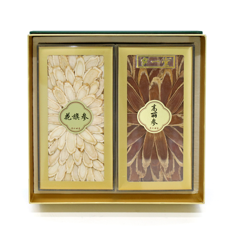 夕一堂 祖母绿花旗参特大花旗参100g+特大高丽太极参100g礼盒装 滋补养生营养品 中秋礼品送长辈父母老人 初级农产品