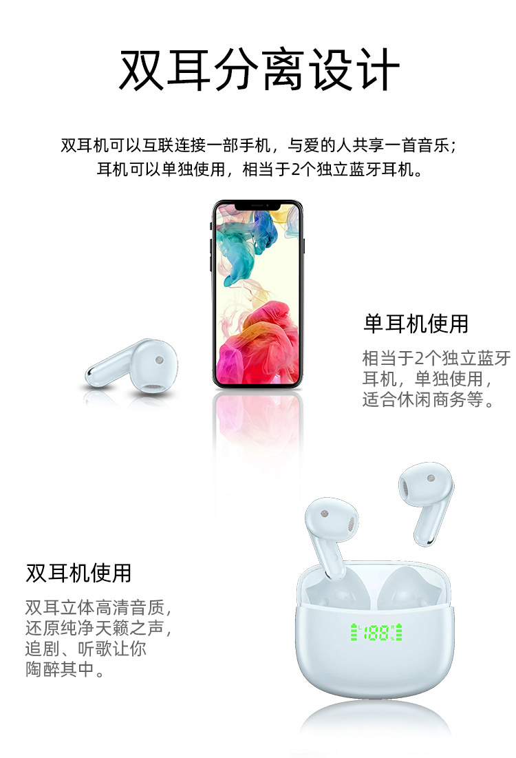 康佳蓝牙无线耳机半入耳式智能降噪(可数显)KTW9