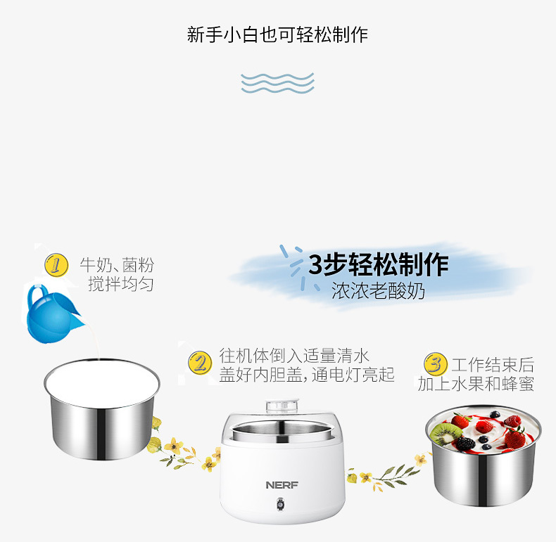 NERF酸奶机不锈钢内胆家用小型恒温酸奶机ZCW-S09