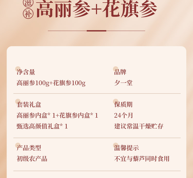 夕一堂 高丽参100g+花旗参100g 礼盒装 滋补养生营养品 中秋送礼佳品 送长辈父母老人 初级农产品