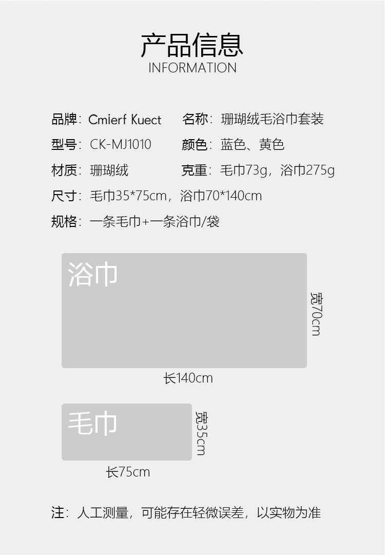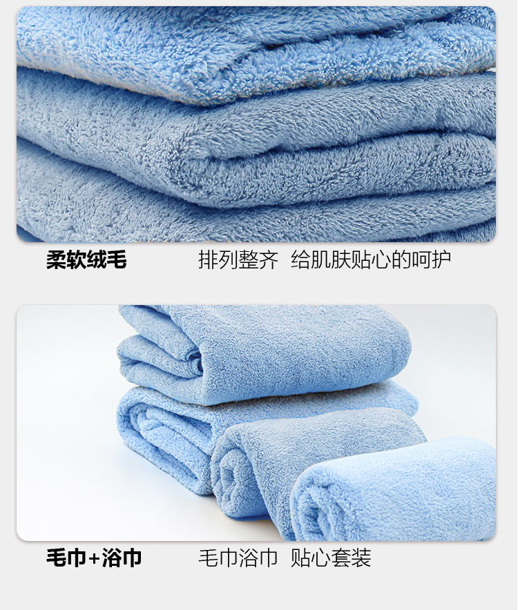 Cmierf Kuect 珊瑚绒毛浴巾套装蓝色CK-MJ1010