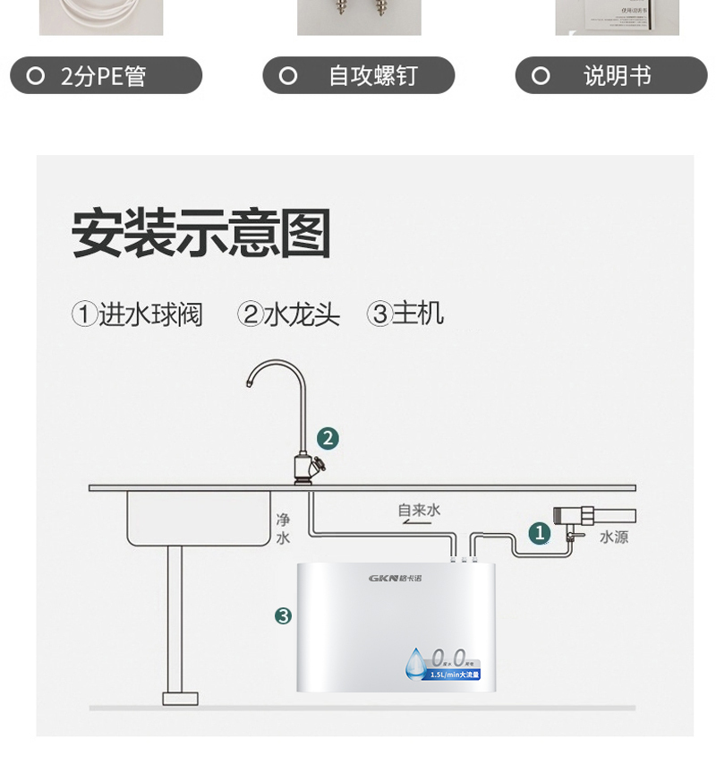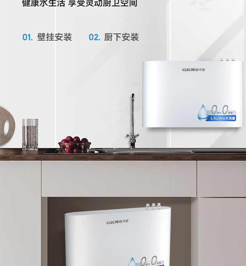 格卡诺新款苹果三代金韵纯水机反渗透五级净水机GKN-RO-100