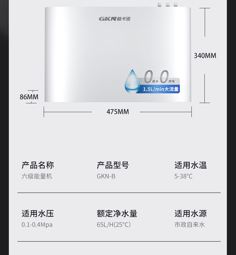 格卡诺家用直饮净水器不插电无废水六级超滤能量机A款