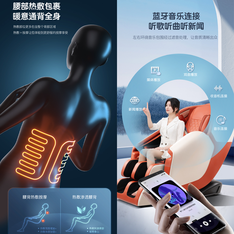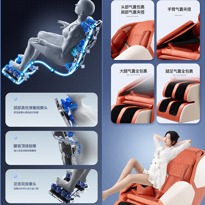 美蒂泰斯 家用零重力太空舱按摩椅 全身气囊包裹 腰部热敷 蓝牙链接 液晶触控大屏 型号:5H