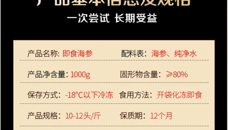 包邮 复兴岛大连即食海参辽参 固形物含量大于80% 单个真空包装 2斤装 10-12头/斤 顺丰冷链发货
