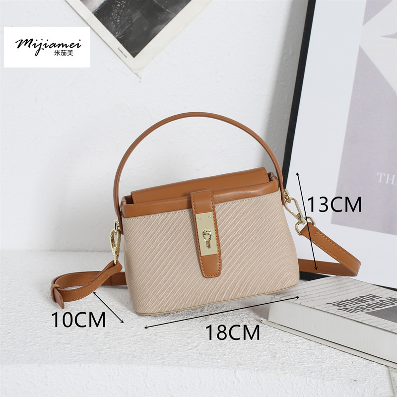 Mijiamei米茄美 高级小众拼色马鞍包 棕色M1253